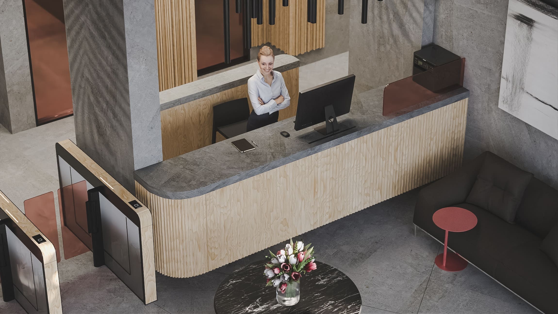 Все что нужно Вам и Вашим гостям — у одной стойки. Консьерж зафиксирует заявку на ремонт, пропустит гостей, получит доставку из интернет магазина, передаст ключи и документы, посадит ребенка в такси
